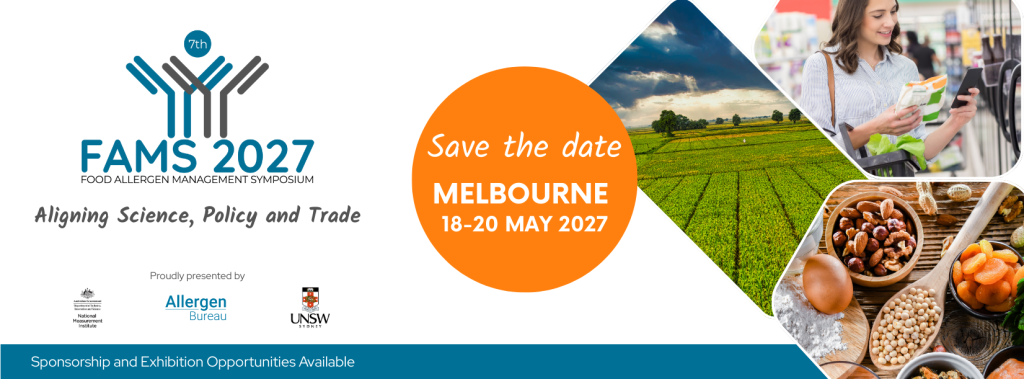 The Allergen Bureau along with the University of New South Wales (UNSW) and National Measurement Institute (NMI) is pleased to invite you to sponsor or exhibit at the 7th Food Allergen Management Symposium to be held at the Melbourne, 18-20 May 2027.